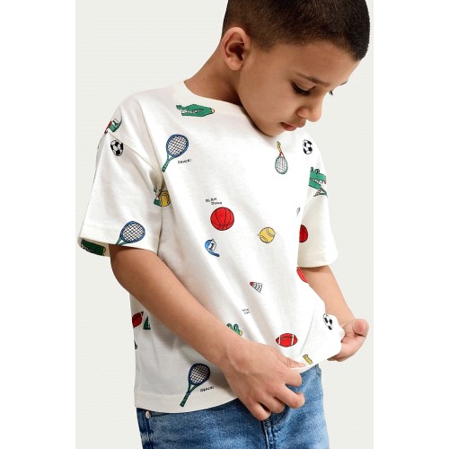 F&F Boys Pure Cotton Sports Print T-Shirt in Cream