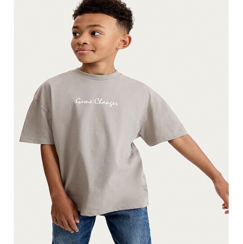 F&F Boys Pure Cotton Printed Oversized Fit T-Shirt in Tan
