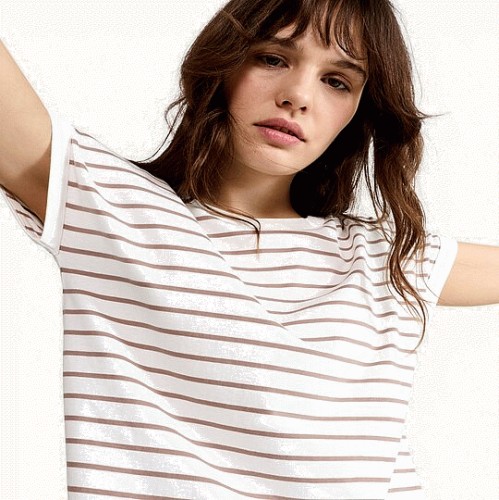 The F&F Edit Pure Cotton Textured Knit T-Shirt in Khaki
