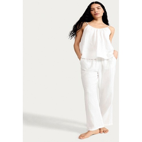 Pure Cotton Lace Trim Pyjama Set in Cream