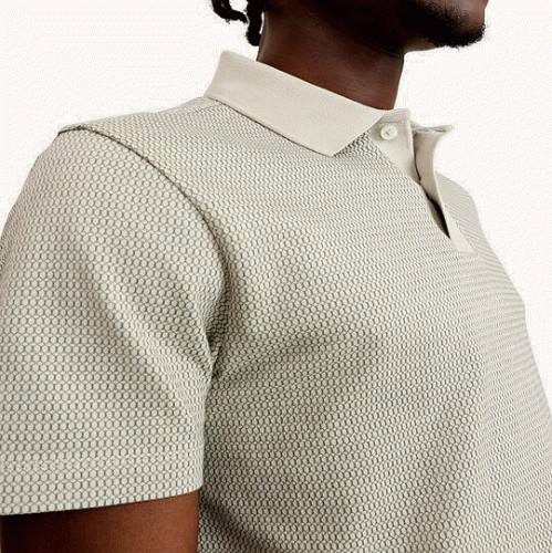 Pure Cotton Textured Short Sleeved Polo Shirt in Green