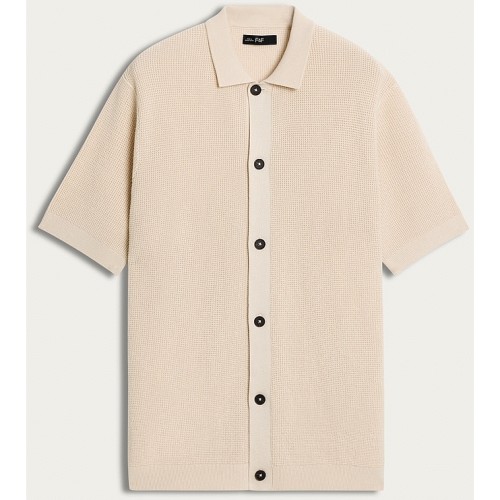 Pure Cotton Textured Knitted Polo Shirt in Neutral