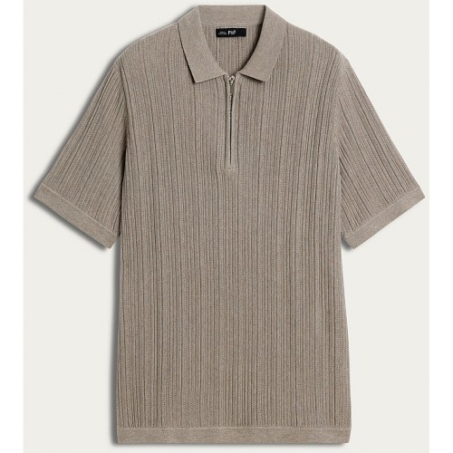 Pure Cotton Ribbed Knitted Polo Shirt in Neutral
