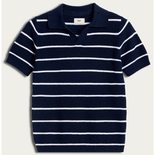 F&F Boys Pure Cotton Knitted Striped Polo Shirt in Navy