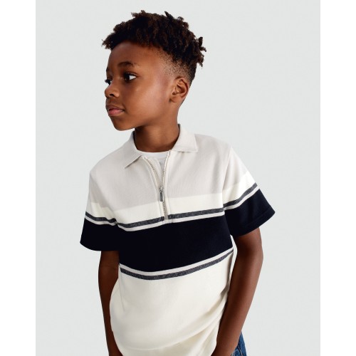 F&F Boys Cotton Rich Colour Block Short Sleeved Polo Shirt in Med Nude