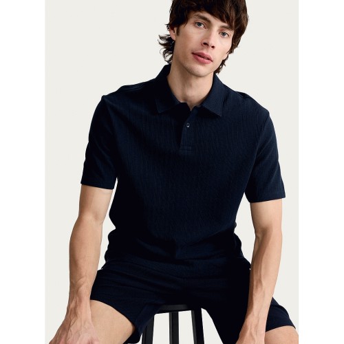 Pure Cotton Textured Short Sleeved Polo Shirt in Navy