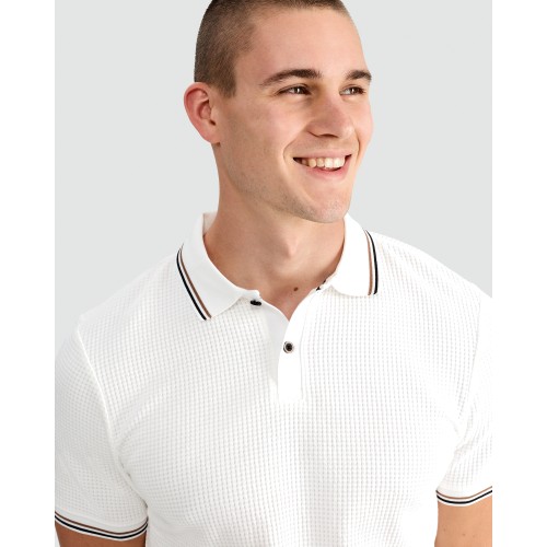 Cotton Blend Waffle Textured Polo Shirt in Cream