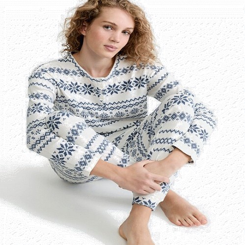 Fair Isle Print Top and Joggers Pyjamas in Cream