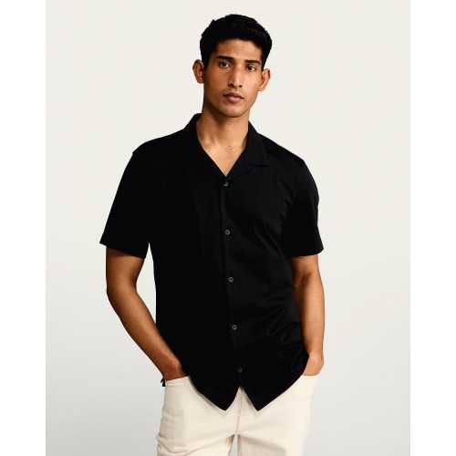 Supima Short Sleeve Revere Shirt in Black