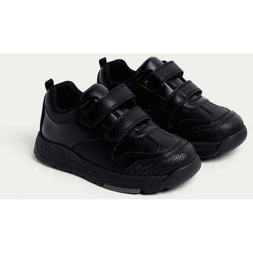 Boys Faux Leather Touch Strap Fastening Trainers in Black