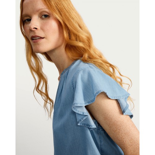 TENCEL V-Neck Blouse in Blue
