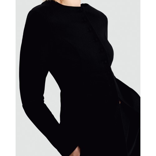 Button Front Long Sleeve Blouse in Black