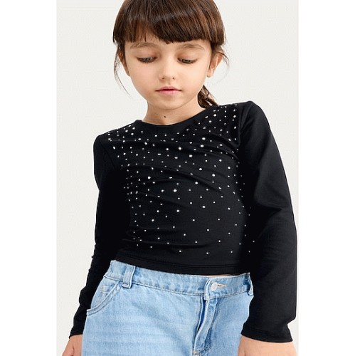Pure Cotton Frill Sleeve Button Up Blouse in Black