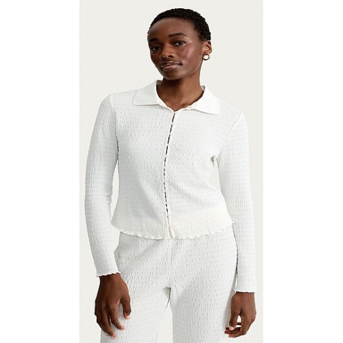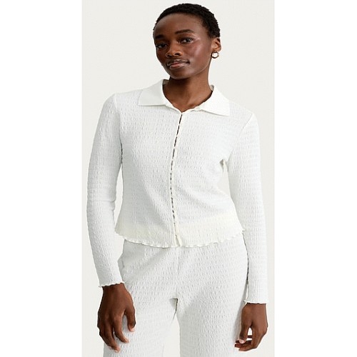 Crinkle Textured Button Up Long Sleeved Co-ord Shirt in Cream