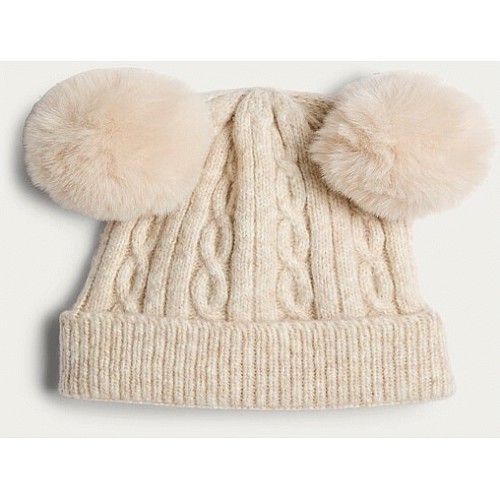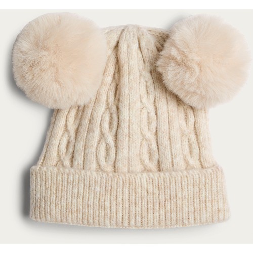 Cable Knit Pom Pom Beanie Hat in Neutral