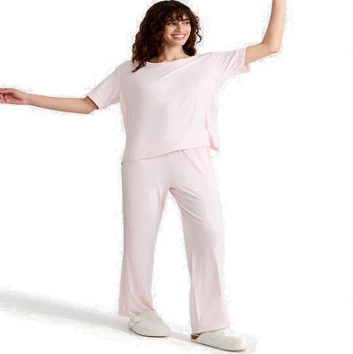 Wide Leg Drawstring Pyjama Bottoms in Pink