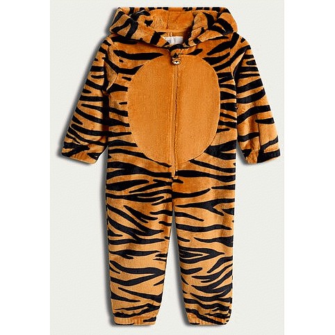 Boys Fleece Tiger Print Zip Up Hooded Onesie in Orange