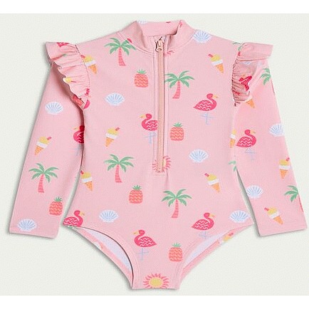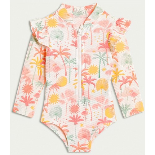 F&F Girls Tropical Print Long Sleeved Swimsuit in Pink