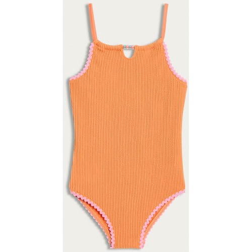F&F Girls Textured Bead Detail Swimsuit in Orange