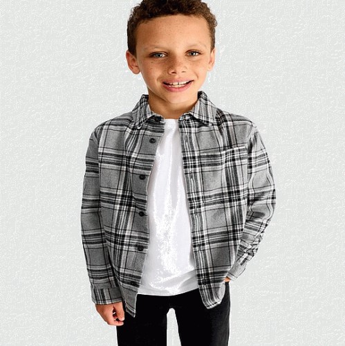 F&F Boys Pure Cotton Check Print Long Sleeved Shirt in Grey