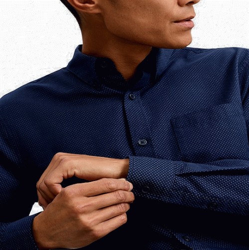Pure Cotton Spot Print Long Sleeved Shirt in Navy
