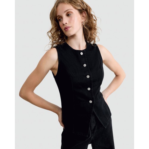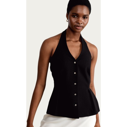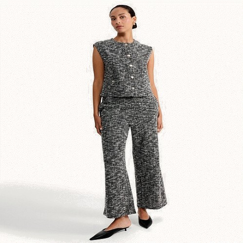 Textured Buttoned Co-ord Waistcoat in Multi Black White
