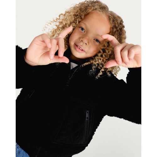 F&F Girls Textured Borg Zip Detail Jacket in Black