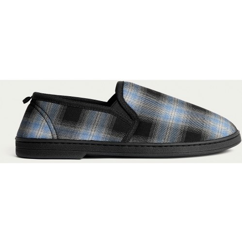 Check Print Closed Back Slippers in Navy