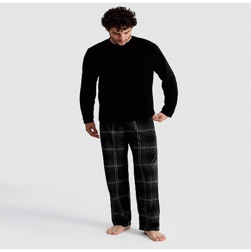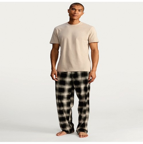 2-Pack Fleece Stripe and Check Print Pyjama Bottoms in Navy