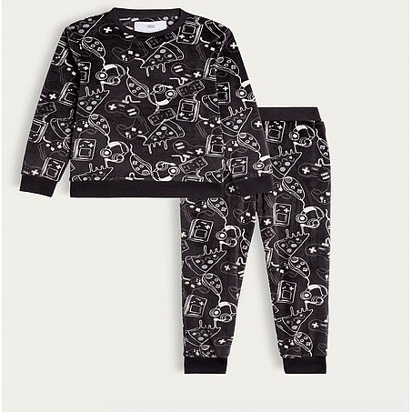 Fleece Teddy Bear Print Revere Pyjama Set in Cream