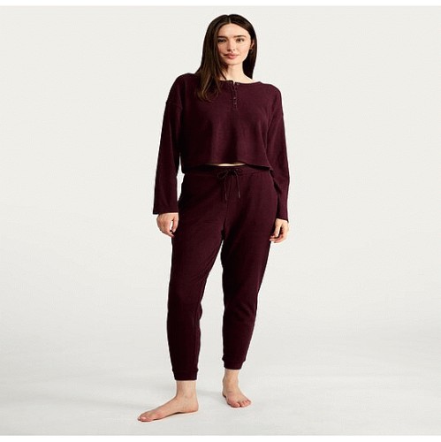 Waffle Henley Long Sleeved Pyjama Set in Purple