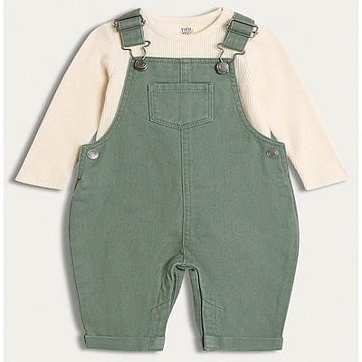 2-Piece Denim Dungarees and Long Sleeved Bodysuit Set in Green