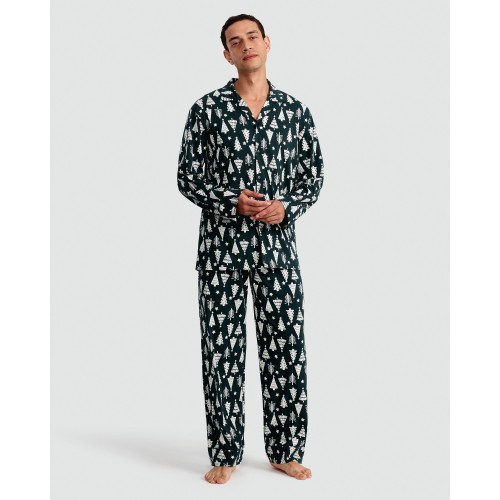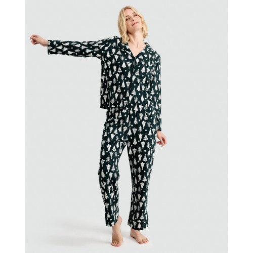 Christmas Tree Print Matching Family Christmas Button Up Pyjamas in Green