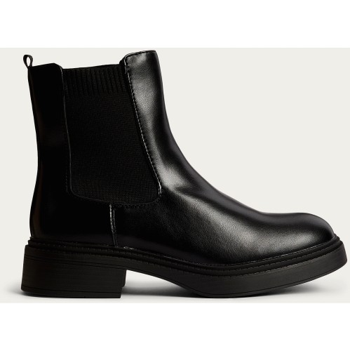 Philadelphia Black Pu Wide Fit Ankle Boots