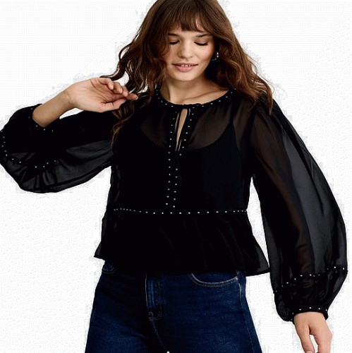 Chiffon Studded Peplum Blouse in Black