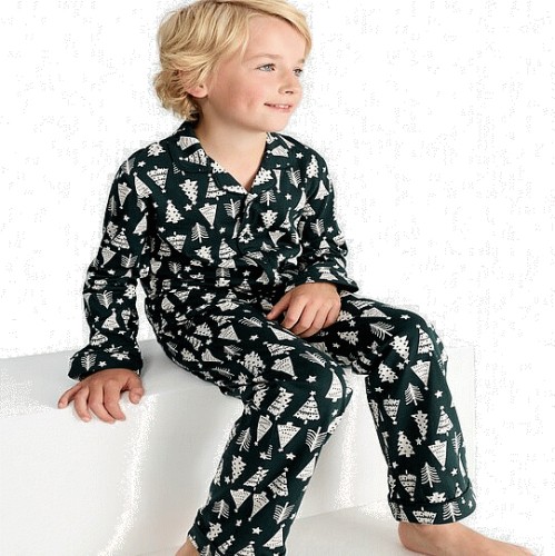 Christmas Tree Print Matching Family Christmas Button Up Pyjamas in Green