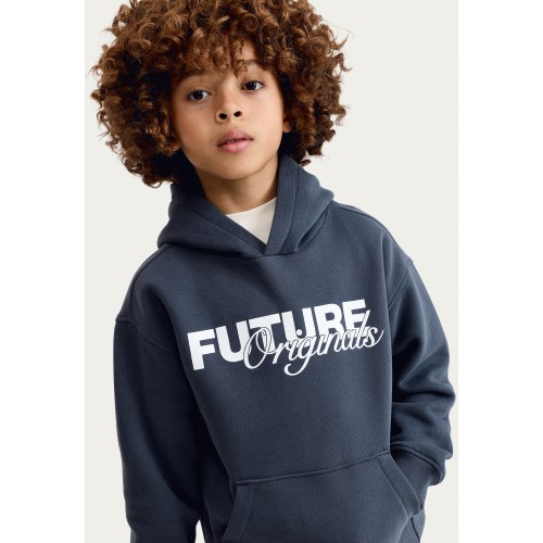 F&F Boys Cotton Rich Slogan Hoodie in Grey