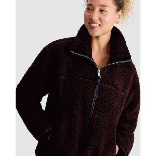 Active Borg Funnel Neck Zip Through Jacket in Purple