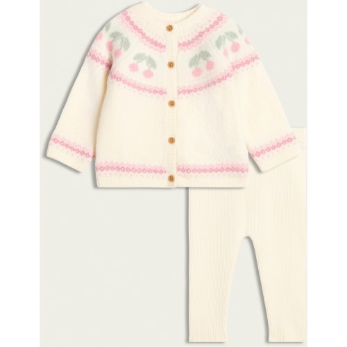 2-Piece Cherry Pattern Cardigan and Leggings Set in Cream
