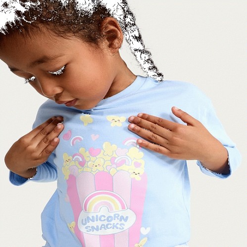 F&F Girls Pure Cotton Unicorn Snacks Long Sleeved Top in Blue