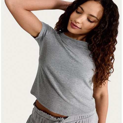 CoolEase Ribbed Short Sleeved Pyjama Top in Grey