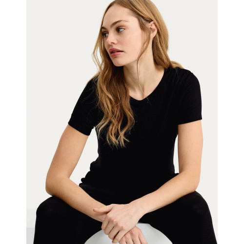 CoolEase Ribbed Short Sleeved Pyjama Top in Black