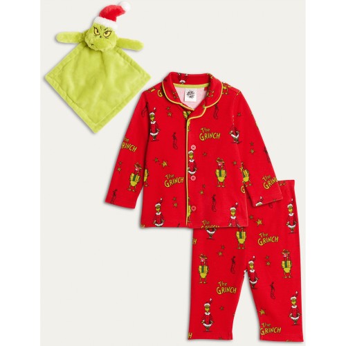 The Grinch 3-Piece Pure Cotton Pyjama Shirt Bottoms and Comforter in Red