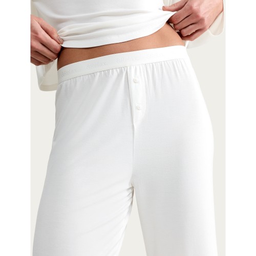 CoolEase Ribbed Wide Leg Drawstring Pyjama Bottoms in Black