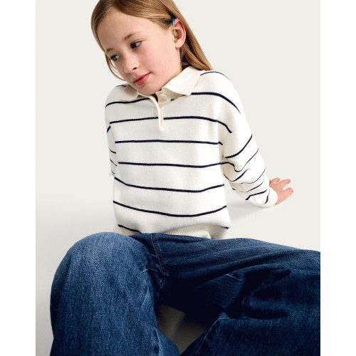 F&F Boys Cotton Rich Stripe Print Zip Up Hoodie in Cream