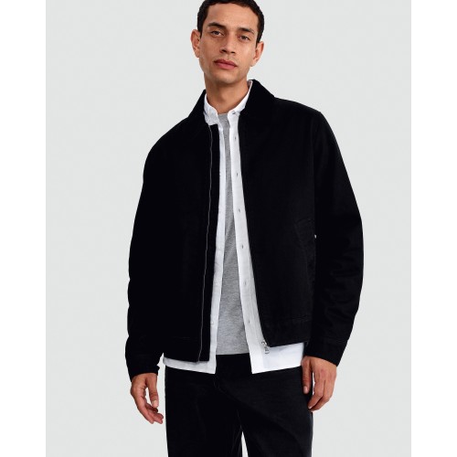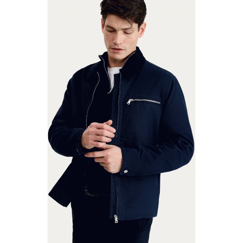 Pure Cotton Corduroy Collar Zip Front Jacket in Black