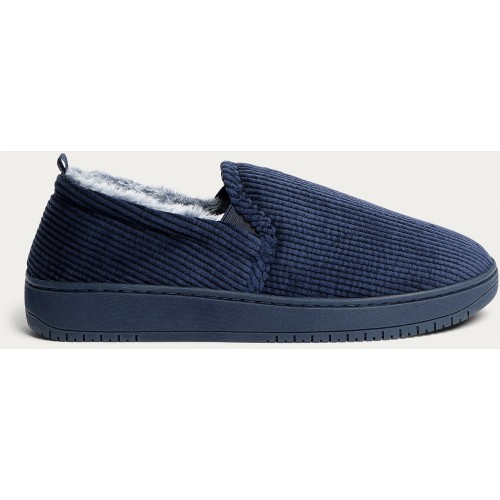 F&F Corduroy Faux Fur Lined Slippers in Navy