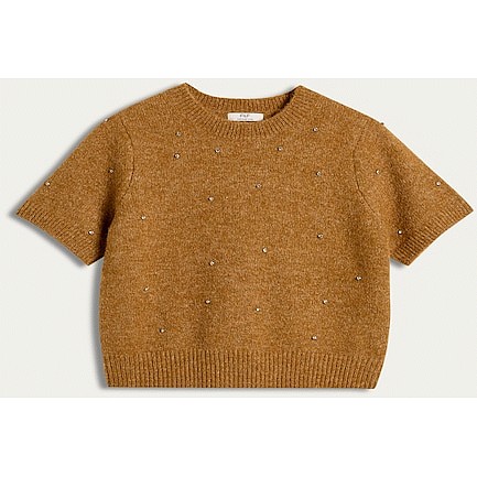 Diamante Embellished Short Sleeved Jumper in Neutral