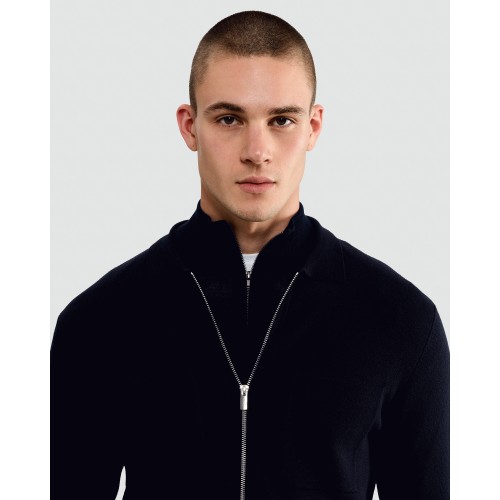 The F&F Edit Knitted Pocket Front Zip Up Collared Jacket in Navy