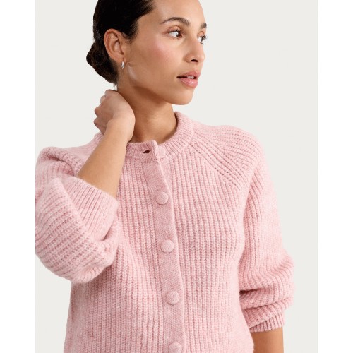 Pure Cotton Knitted Button Front Hooded Cardigan in Multi Pink